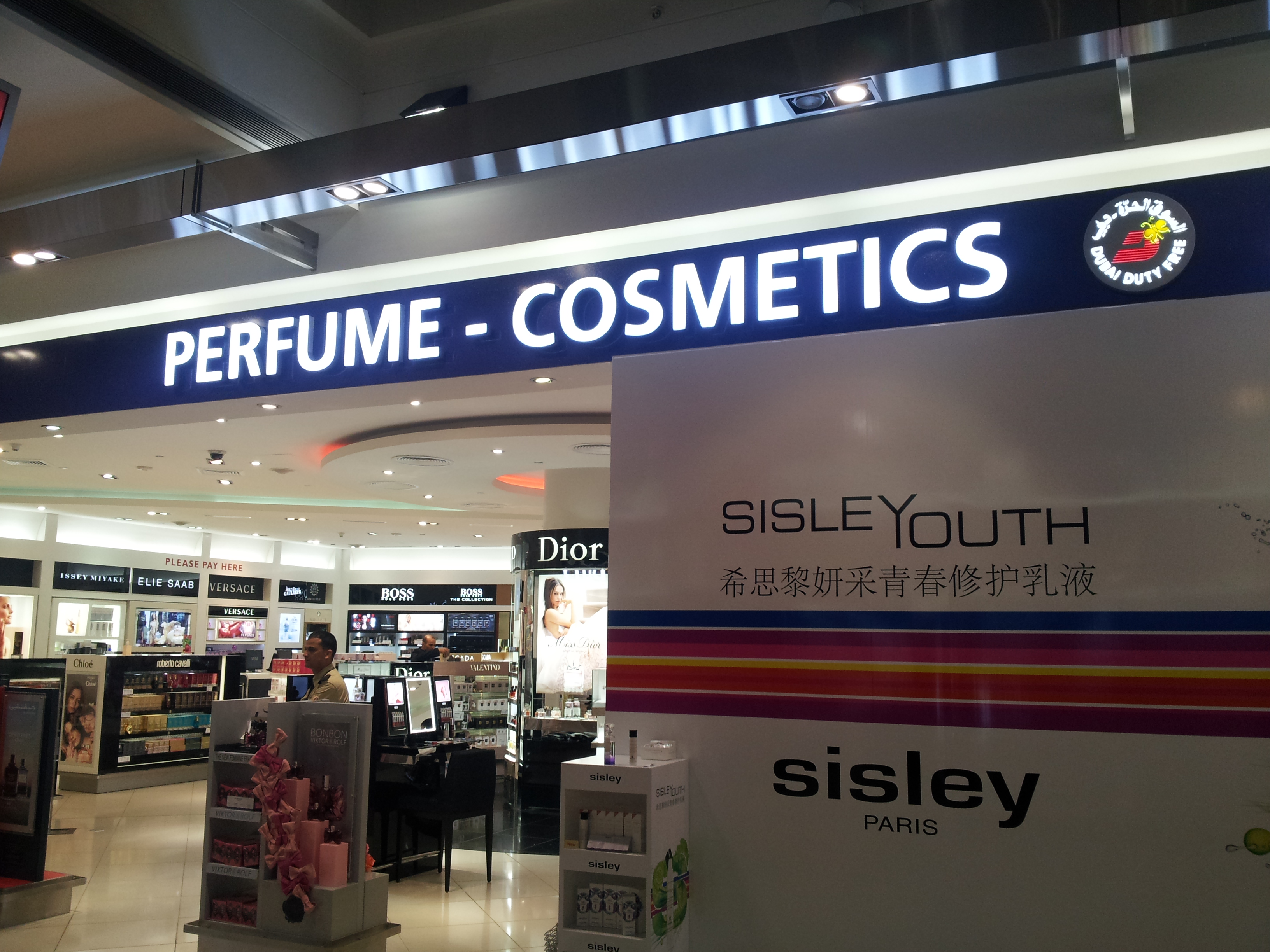Once you clear security, you are funneled into the center of Terminal 3 in which the Emirates flights are located. This terminal is long, walking from end to end can take 15 minutes or more. The center of the terminal where all the shops are is incredibly bright which added to my already groggy demeanor, creating a dream like mega mall out-of-body experience. This time around I really wanted to focus on the plethora of shopping. Dubai Duty Free shops rule this terminal. Many airports you will find a duty-free shop contains food, booze, cosmetics and souvenirs all in one shop. Following Dubai’s passion for opulence, they dedicate large stores for each of these categories. The amount of wine, liquor and tobacco in duty-free is comparable to any large-scale liquor store in the states. The rows and rows of chocolate from all over the world would make anyone’s mouth water. The cosmetics store emitted so many strong scents, I had trouble entering without getting a headache. True to my character I could not pull the trigger and buy anything, simply because there was so much to choose from. I couldn’t narrow down what it is a wanted. Also note, Dubai is not cheap even at the Duty Free, so if you are traveling on to a cheaper destination you might want to hold off. But if the product isn’t offered where you are going, then have at it!